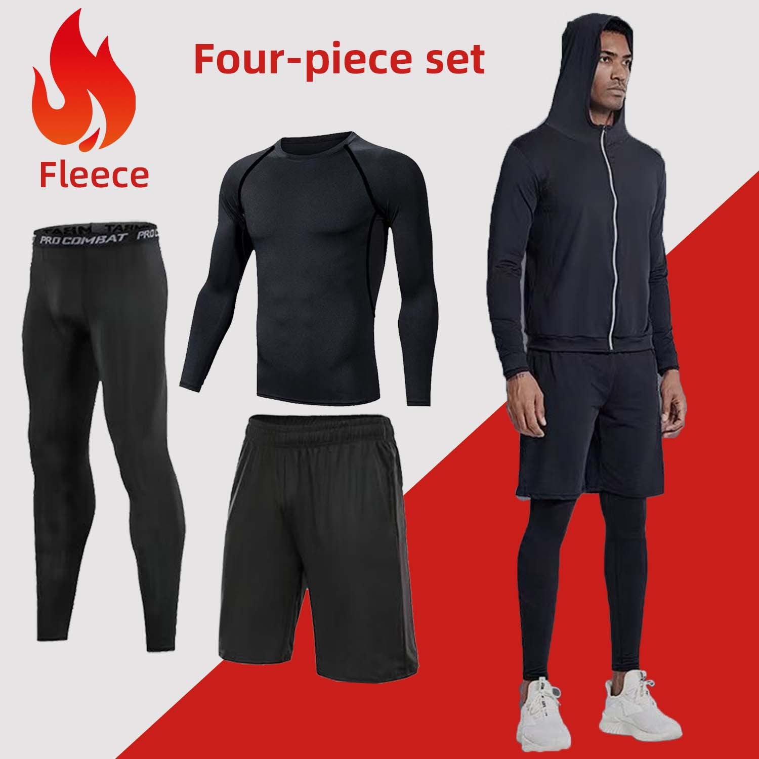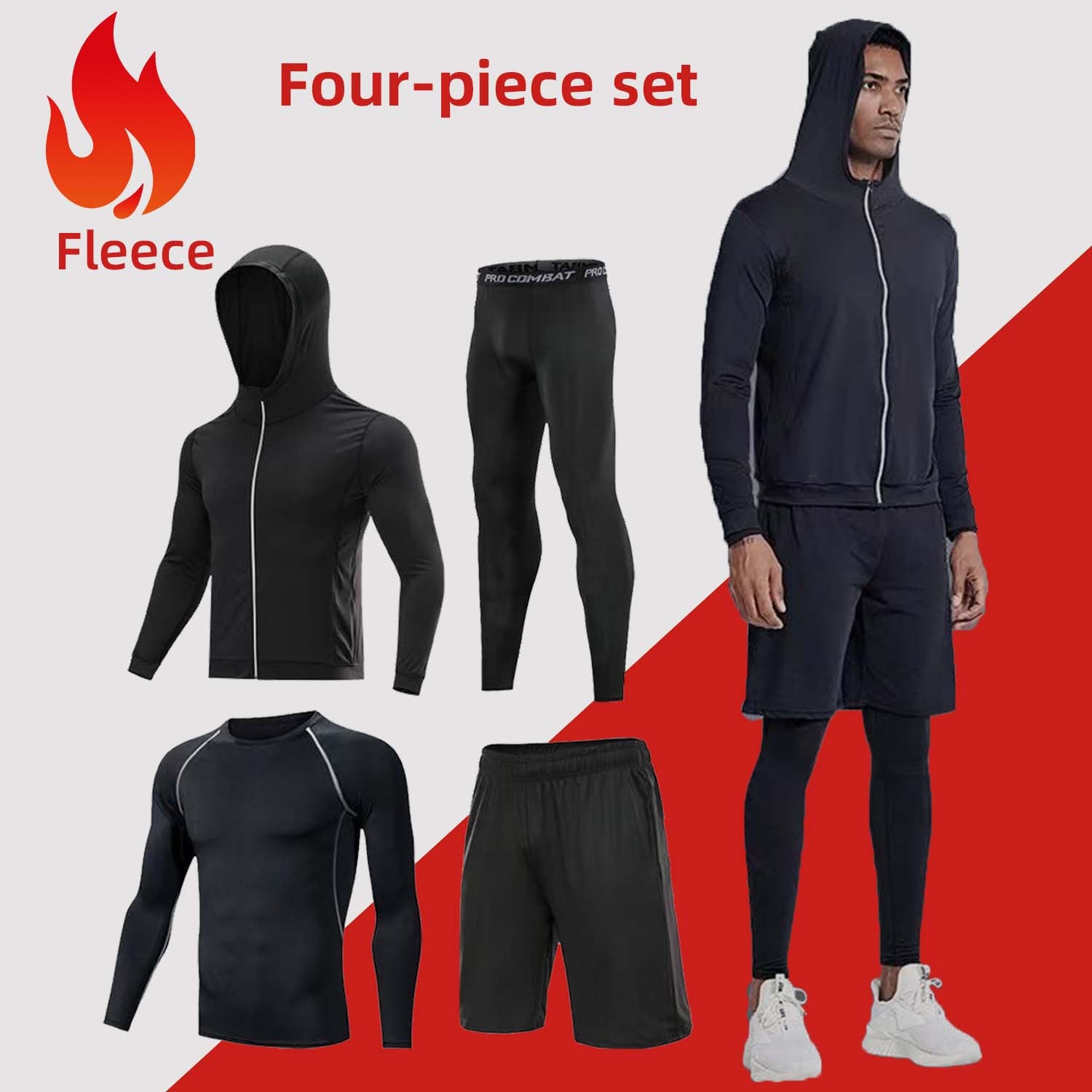• 5-Piece Full Versatility: Includes 1x Hooded Jacket, 1x Compression Long Sleeve, 1x Compression Short Sleeve, 1x Performance Shorts, and 1x Compression Leggings.