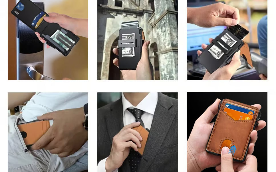 This wallet is perfect for everyday use. It’s slim enough for my front pocket, yet holds all my cards securely. The pop-up card feature is smooth and convenient, and the RFID protection gives peace of mind. I love the dual ID windows and the sturdy money clip for cash. The metal design feels durable and premium — definitely not cheap. Great balance of style, function, and security. Highly recommend it, especially as a gift for men